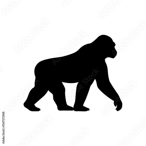 © Profullya, Obraz premium Majestic Black Silhouette of a Gorilla Walking Powerful Primate Design