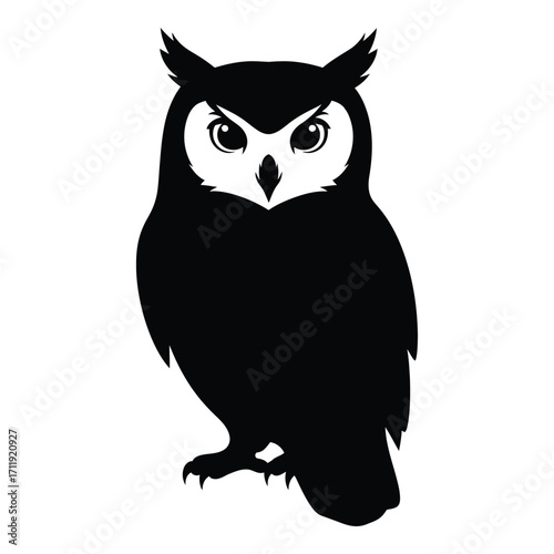 © MD Riad Hossain , Fototapeta premium Majestic black silhouette owl perched eyes bright graphic art design silhouette