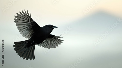 © Black_Studio, Obraz premium Majestic Blackbird in Flight: A Stunning Wildlife Capture