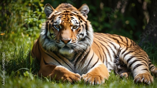 © maruf, Fototapeta premium Majestic Blue-Eyed Tiger Close-Up – Vibrant Wildlife Animal Portrait