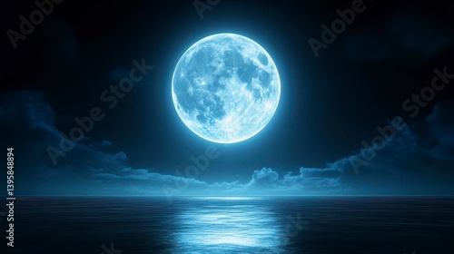Fototapeta premium Majestic Blue Full Moon Over Serene Ocean at Night Sky