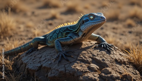 © Ai DreamscapesTH, Fototapeta premium Majestic Blue Lizard Basking on Rock in Desert Habitat Wildlife Reptile