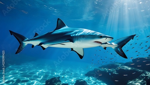 Obraz premium Majestic Blue Shark Swimming Serenely in the Pristine Ocean