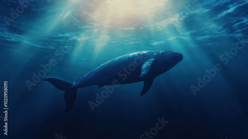 © CQSP, Fototapeta premium Majestic Blue Whale Swimming Underwater