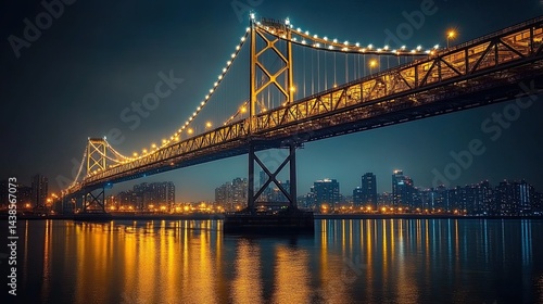 Fototapeta premium Majestic bridge spanning a river with innovative design and dramatic lighting for engineering, travel, and architectural themes