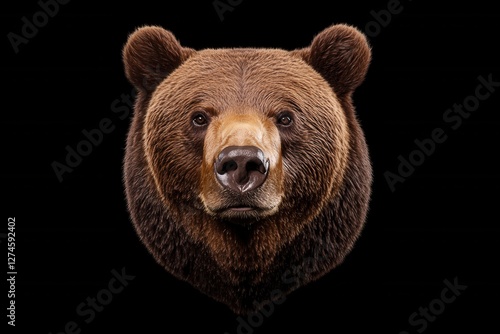 © Popelniushka, Fototapeta premium Majestic Brown Bear Portrait: Front View of a Powerful Kamchatka Bear on Dark Canvas