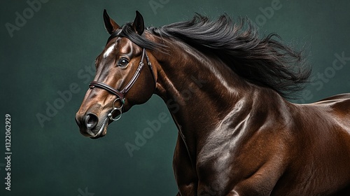 © Nikola, Obraz premium Majestic Brown Horse Galloping with Graceful Mane Flow