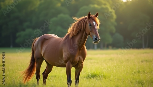 © AmStoock, Fototapeta premium Majestic Brown Horse in Meadow