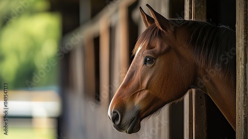 © Infinity, Fototapeta premium Majestic Brown Horse in Stable, Peaceful Countryside Portrait