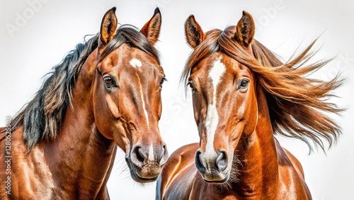 © Wanlop, Obraz premium Majestic Brown Horses: Elegant Portrait on White Background