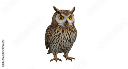 © MdKarvin, Naklejka premium Majestic brown owl perched serene capturing nature's elegance in a detailed wildlife portrait transparent background