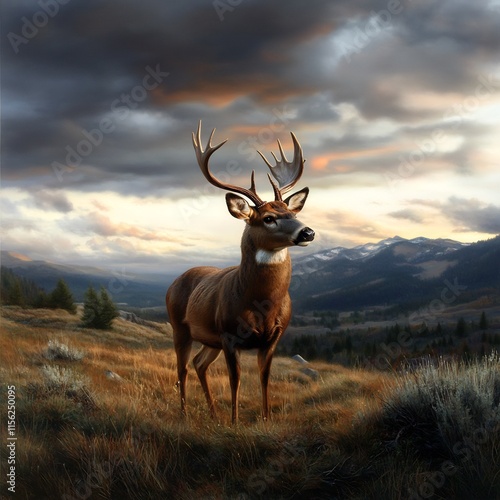 © muji, Fototapeta premium Majestic Buck at Sunset in the Mountains