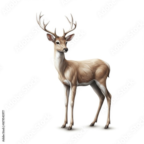 Fototapeta premium Majestic Buck with Grand Antlers on a Clean White Background Digital Illustration