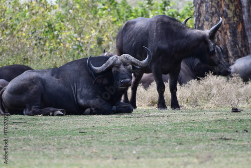 © walter geraghty, Obraz premium Majestic buffalo herd resting peacefully in savanna grasslands