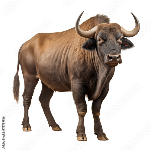 Fototapeta premium Majestic Buffalo Standing Strong with Large Curved Horns in a Natural Posture On Transparent Background