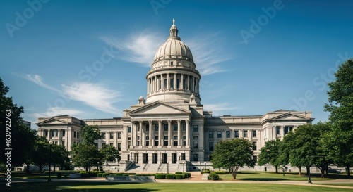Obraz premium Majestic building with dome and columns under a vibrant blue sky