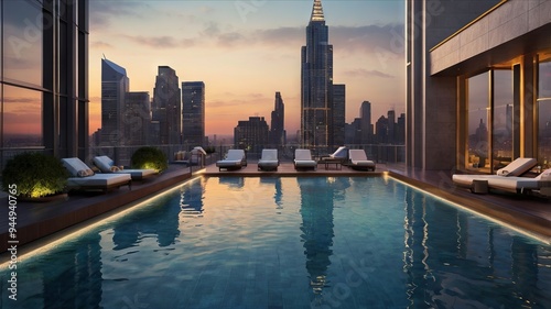 © Galang, Obraz premium Majestic Buildings Shining Creating Beautiful Reflections
