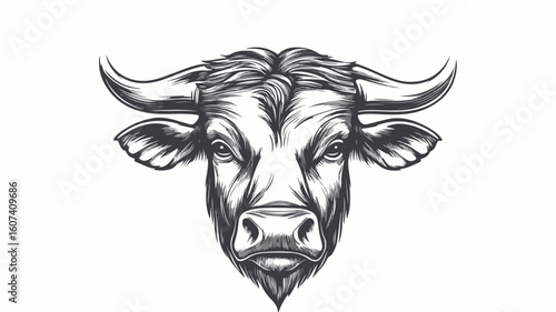 Fototapeta premium Majestic Bull Head Simple Line Vector Illustration