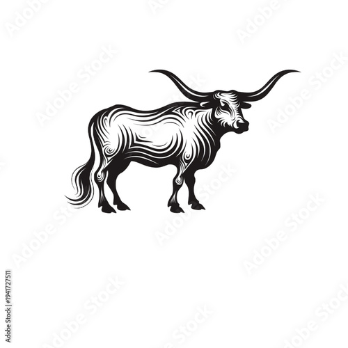 Obraz premium Majestic bull with curved horns and dynamic black and white design