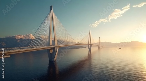 © Ariep, Obraz premium Majestic Cable-Stayed Bridge at Sunset