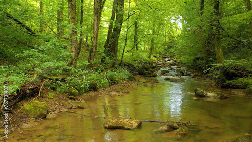 Obraz premium Majestic calm and relaxing forest river.
