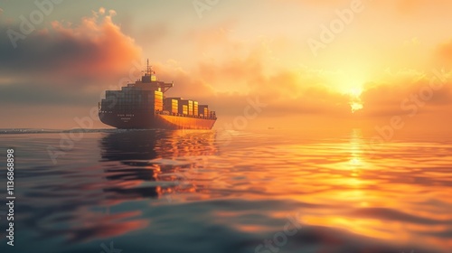 © Tri, Obraz premium Majestic Cargo Ship at Golden Hour