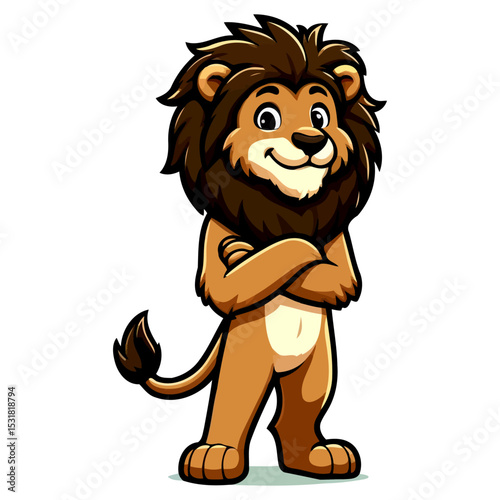 Obraz premium Majestic Cartoon Lion: A Regal and Cute Animal Character Illustration