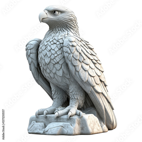 © Iftikhar alam, Naklejka premium Majestic cartoonstyle eagle statue perched on a stone base showcasing intricate details and vibrant personality, Majestic Eagle Stone Statue in 3D Cartoon Style on transparent background