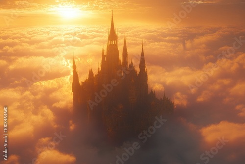 © Goat_Team, Fototapeta premium Majestic Castle Above the Clouds at Sunset