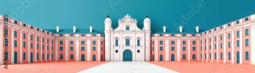 © Naput, Obraz premium Majestic castle hall, gothic architecture, flat design illustration