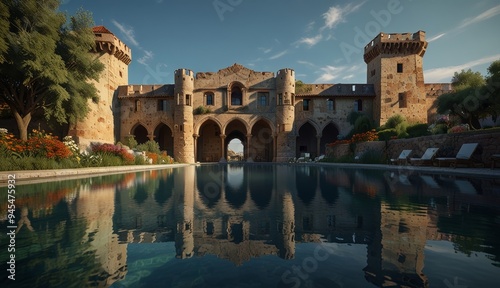 Fototapeta premium Majestic Castle Reflected in Pool