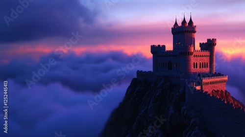 © Ashalina, Fototapeta premium Majestic castle sunset cloudscape, fantasy illustration, game design