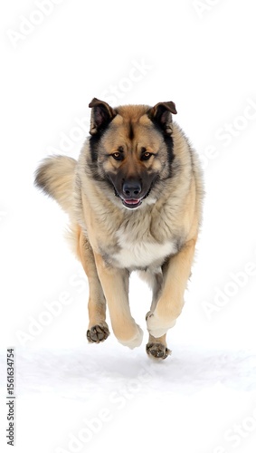 © Shilastock, Naklejka premium Majestic caucasian shepherd dog running forward with intense gaze isolated on white background