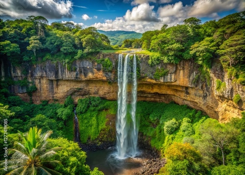 © Four888, Fototapeta premium Majestic Chamarel Waterfall in Mauritius: Cascading Water and Lush Greenery