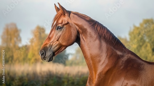 Obraz premium Majestic Chestnut Horse Portrait in Natural Setting with Soft Background,...