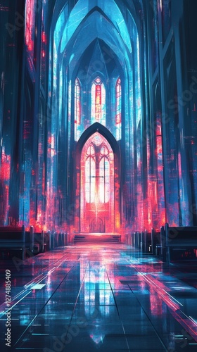 © RizArt, Fototapeta premium Majestic church interior displays vibrant stained glass windows and architecture