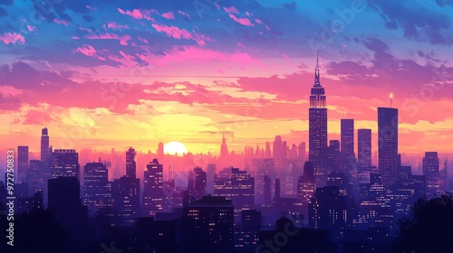 © Svitlana, Fototapeta premium Majestic City Skyline at Dusk