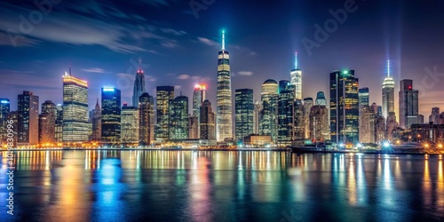 Fototapeta premium Majestic city skyline at night with bright lights illuminating the darkness, night, majesty, city, skyline, lights