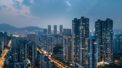© pkproject, Naklejka premium Majestic Cityscape Skyline with Illuminated High-Rise Skyscrapers at Night