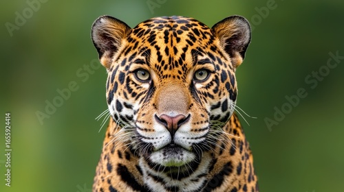 © FarhaStock, Obraz premium Majestic Close-Up of a Beautiful Jaguar with Distinctive Spots and Striking Green Eyes in Nature