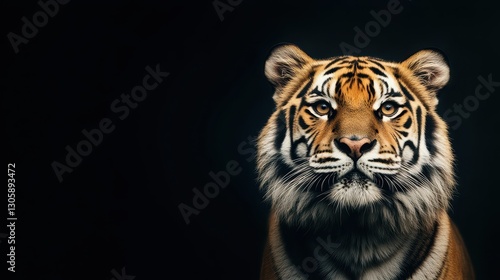 © Lumora, Fototapeta premium Majestic Close-Up Portrait of a Tiger with Striking Eyes Against a Dark Background