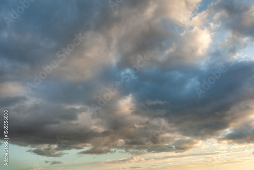 Obraz premium Majestic cloud formations during sunset casting shadows across the vibrant...
