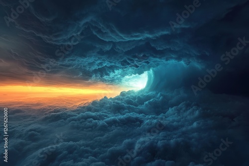 Fototapeta premium Majestic clouds illuminated by sunset over a turbulent sky at twilight