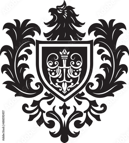 © BABBAN, Fototapeta premium Majestic Coat of Arms Black Vector Icon Noble Knightly Symbol Vector Emblem