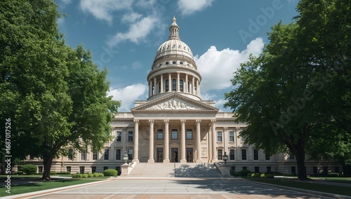 © Md, Naklejka premium Majestic colorado state capitol building architecture amidst lush green trees and sky