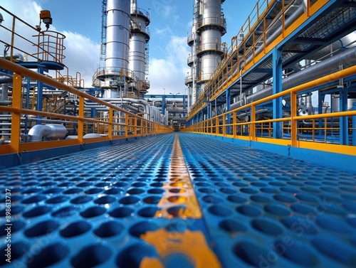 © frank29052515, Obraz premium Majestic Complexity: Wide-Angle View of Petrochemical Refinery Pipeline System