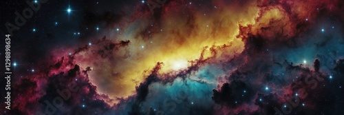Naklejka premium Majestic Cosmic Nebula with Vibrant Clouds Illuminated by Distant Stars in...