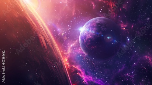 Fototapeta premium Majestic cosmic phenomenon with vibrant nebula and planets
