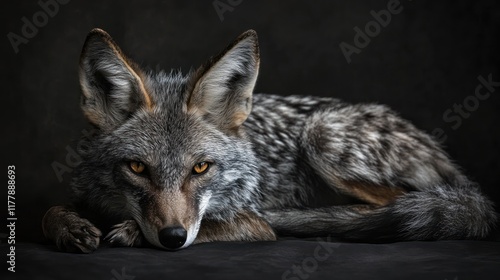 Obraz premium Majestic Coyote Portrait: A Study in Gray and Amber
