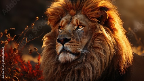 © Ummeya, Fototapeta premium Majestic creature with a golden mane in a natural setting